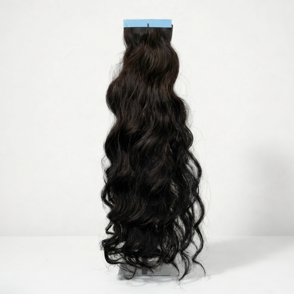 Tejphårförlängningar appliceras genom att placera en tunn sektion av ditt naturliga hår mellan två självhäftande hårslingor, vilket ger ett platt och sömlöst resultat.